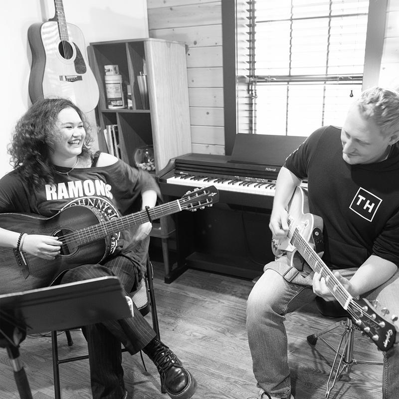Our studio provides a warm, peaceful, creative, and relaxing learning environment. Every square inch was designed with extreme attention to detail to make sure you get the best possible experience. Our lesson rooms are soundproofed and equipped with pro-level gear, and our lobby has comfy seating and cameras with a live feed so parents can watch their child's progress in real-time. Look around to get a feel for our vibe and what your music lesson experience at The Talent House will be like.